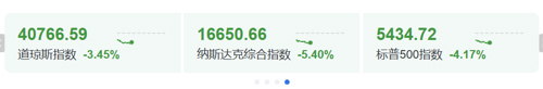 标普500指数当日下跌4%,有望创下自2022年9月以来最糟糕的一天。道琼斯工业平均指数暴跌1500点,跌幅达3%;纳斯达克综合指数下挫5%。股市普遍下滑,纽约证券交易所下跌股票数量与上涨股票数量之比达到6:1。
