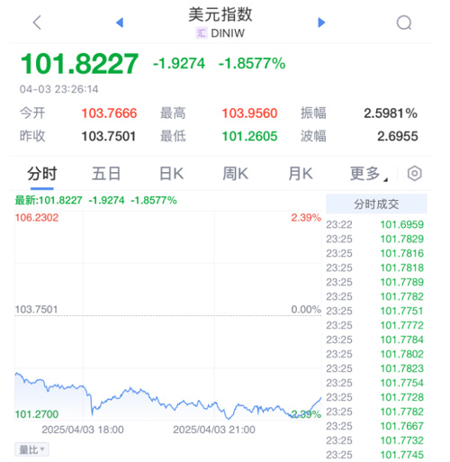 在避险情绪升温下,投资者纷纷转向国债市场。基准的10年期美债收益率下跌17个基点,至4.021%;同时,美元指数暴跌,日元和欧元等全球主要货币对美元大幅走强。