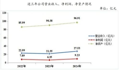 盈利方面,2024年公司实现净利润9.23亿元,同比增加2.88亿元,增长45.4%。资产负债方面,截至2024年末公司资产总额为632.05亿元,较年初增长20.43%;负债总额为535.14亿元,较年初增长23.17%。