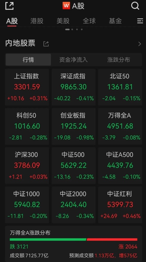 4月22日早盘,A股震荡分化,三大指数涨跌不一,沪指重回3300点上方。截至午间收盘,沪指涨0.31%,深成指跌0.41%,创业板指跌0.98%。沪深两市半日成交额超7000亿元。盘面上热点较为杂乱,个股跌多涨少,全市场超3100只个股下跌。