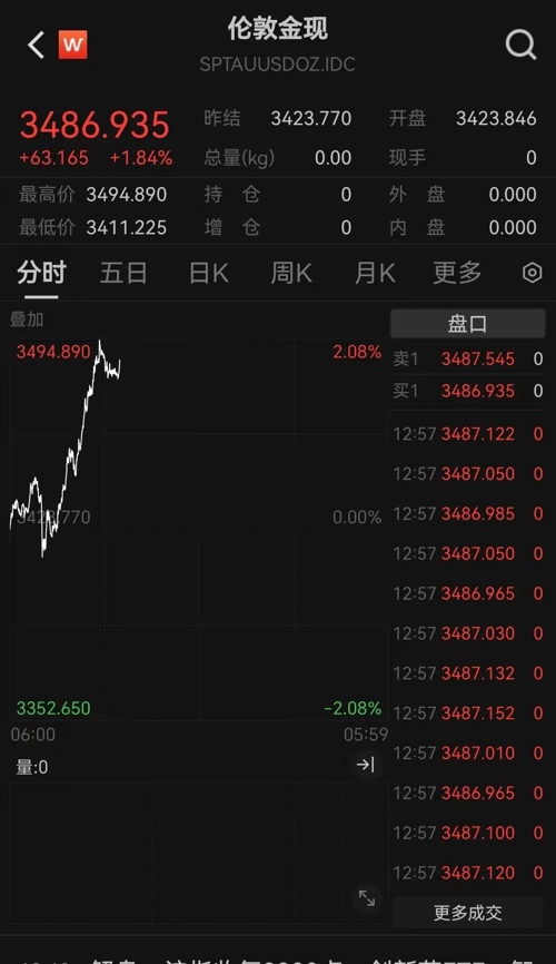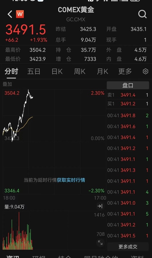 消息面上,黄金价格延续其创纪录的涨势,现货黄金今日连续冲破多个关口,刷新高位至3494美元,最新涨幅达1.84%;COMEX黄金期货价格大涨近2%,逼近3500美元/盎司。