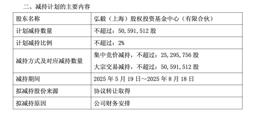 4月22日晚间,城投控股发布的公告显示,股东弘毅(上海)股权投资基金中心(有限合伙)计划自15个交易日后的3个月内,通过集中竞价交易、大宗交易等方式减持其持有的不超过5059.15万股公司股份,减持比例不超过公司总股本的2%。目前,弘毅投资持有城投控股1.5亿股股份,占公司总股本的5.94%。弘毅投资对城投控股的投资最早可追溯至2013年。彼时,弘毅投资参与了城投控股混改,以17.93亿元的价格,受让了当时城投控股大股东上海城投所持10%的股权,一跃成为城投控股的第二大股东。2017年,城投控股将水类、环境业务剥离至上海环境。弘毅投资因此分别持有城投控股和上海环境9.24%股权,为两家公司的第二大股东。从2019年开始,弘毅投资在入股城投控股5年后陆续减持股份。仅在2019年,弘毅投资就合计减持了5624.13万股,约占公司总股本的2.2%。4月22日收盘,城投控股报5元/股,市值为126亿元。公开资料显示,弘毅投资成立于2003年,拥有私募股权投资(天使、VC、PE、不动产投资)、对冲基金(金涌投资)、公募基金(弘毅远方基金)、实业投资(百福控股、弘和仁爱)等业务板块。弘毅投资管理资金总规模超1200亿元,出资人包括高盛、加拿大养老保险基金、美国德州教师退休基金、阿布扎比投资局、科威特投资局、淡马锡等。城投控股2024年财报显示,公司当期实现总营业收入94.32亿元,同比增长268.6%;利润总额为5.12亿元,同比减少8.62%;实现归母净利润2.43亿元,同比减少41.58%。对于归母净利润同比下降的原因,城投控股表示,主要是投资收益同比下降所致。