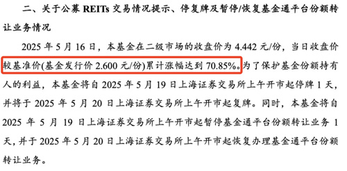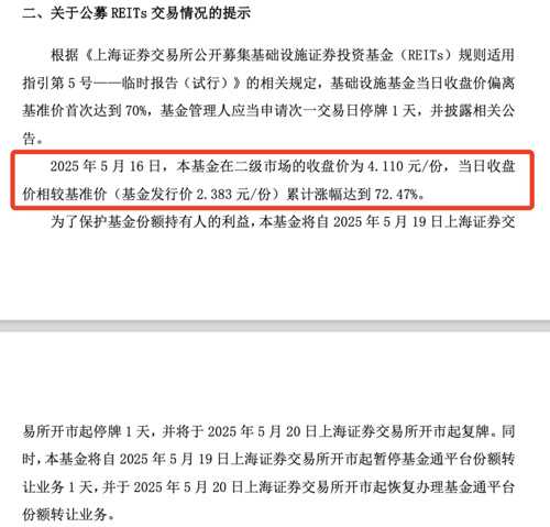 【导读】累计大涨70%!多只公募REITs触发临时停牌