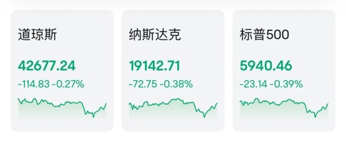 美东时间5月20日,连涨多日的美股暂时止住上涨势头,三大指数小幅收跌。截至收盘,道指跌0.27%,报42677.24点;标普500指数跌0.39%,报5940.46点,终结六连涨;纳指跌0.38%,报19142.71点。