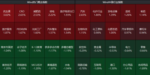 从板块上看,医药板块震荡走强,汽车整车、核电、化工等板块表现活跃;而港口、网络游戏、首发经济等概念股震荡调整。