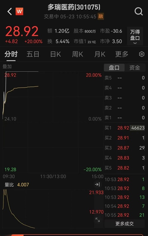 【导读】恒瑞医药港股上市后大涨超30%,医药板块震荡走强,多瑞医药、海辰药业等直线冲涨停,涨幅达20%