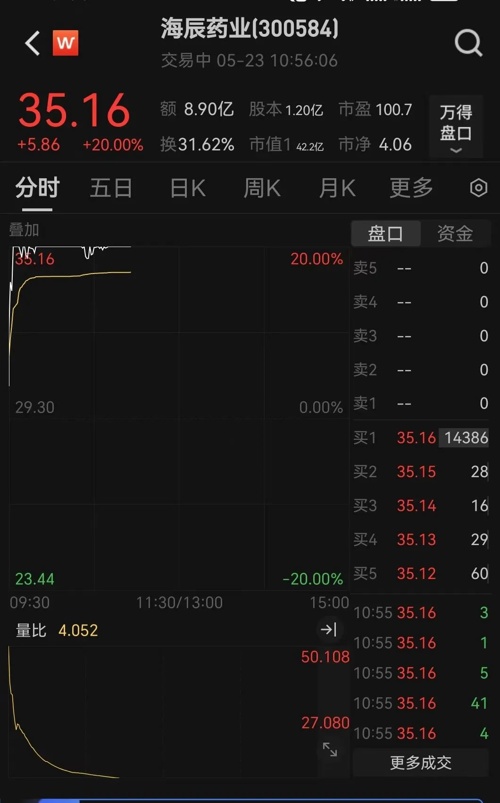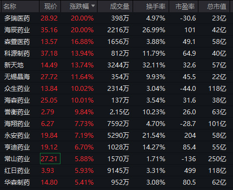 恒瑞医药带动医药板块开盘走强,海辰药业、多瑞医药实现20cm涨停,众生药业、海森药业涨停。