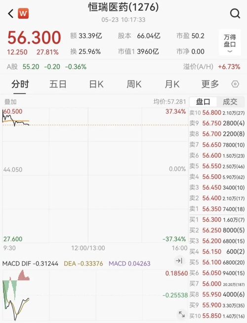 恒瑞医药港股上市首日,盘中一度大涨超30%,最新总市值达3960亿港元。
