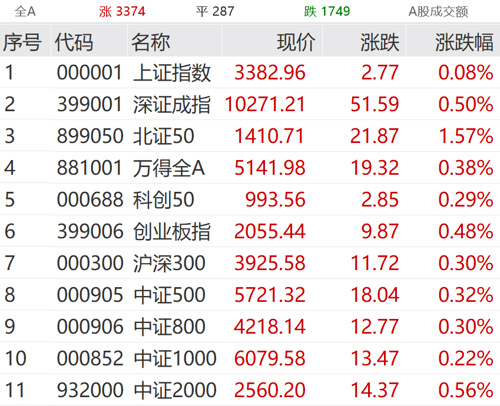 5月23日,A股市场震荡走高,主要指数红多绿少。截至午间收盘,上证指数涨0.08%,深证成指涨0.5%,创业板指涨0.48%,北证50指数涨1.57%。