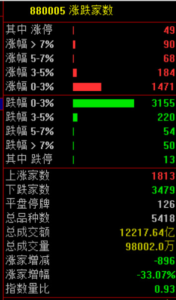 市场共1813只个股上涨,49只个股涨停,3479只个股下跌。