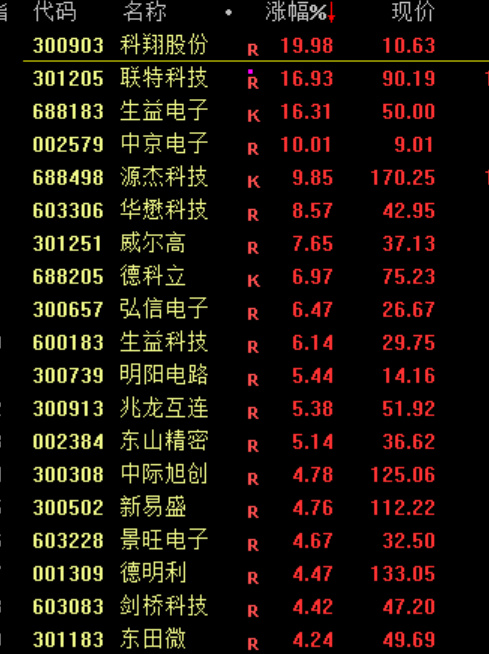算力硬件股集体走强,PCB、CPO等方向领涨,逸豪新材、科翔股份、沪电股份等多股涨停。