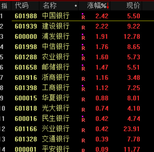 银行股震荡走强,农业银行、浦发银行、成都银行等多股创历史新高。