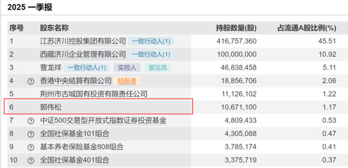 截至2025年一季度末,郭伟松仍持有4.57%的股份。随着4月7日以来的股价大幅反弹,郭伟松在本次举牌前已经逐步加仓至4.99%。