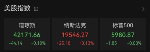 截至收盘,道指跌0.1%,报42171.66点;标普500指数跌0.03%,报5980.87点;纳指涨0.13%,报19546.27点。