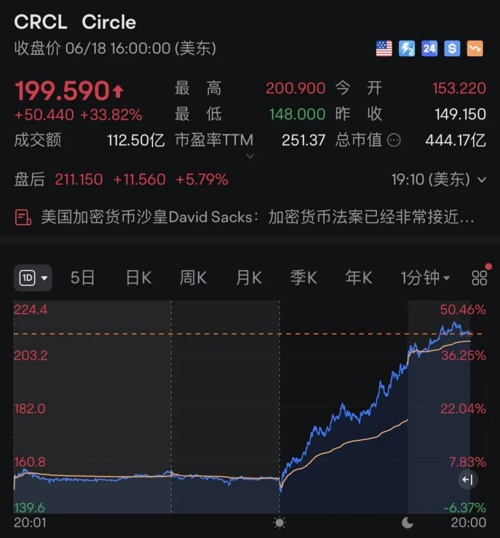稳定币第一股Circle股价大涨近34%,创IPO以来最大单日涨幅。