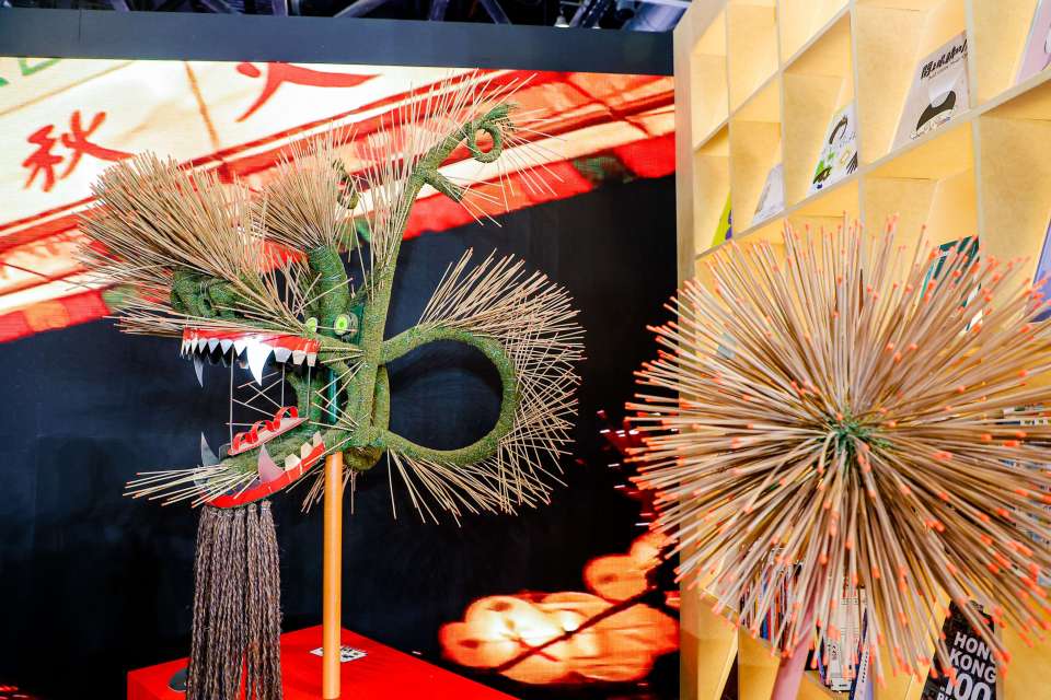 今年北京国际图书博览会香港馆的主题展区集中展示多项香港非物质文化遗产,包括蒸笼、花钮、广彩、粤剧头饰、扎作、港式奶茶等制作技艺及舞火龙,配合相关的香港出版物、印刷品,多元呈现优秀中华文化在香港这座国际都会的传承与创新。