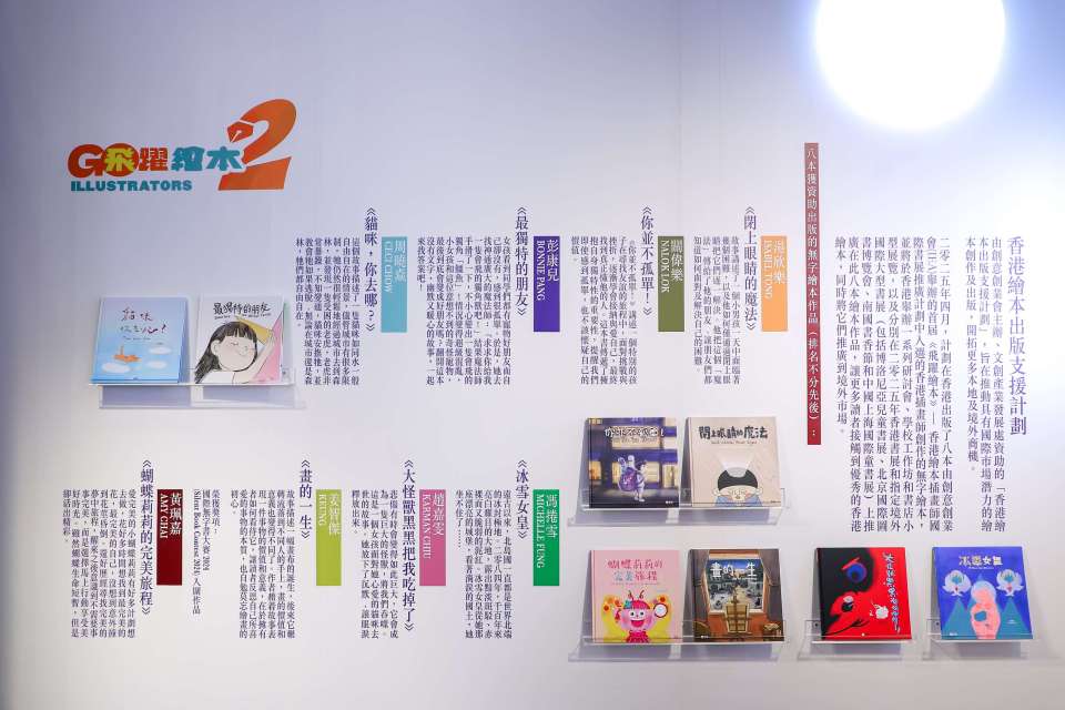 这八本无字绘本亦在香港馆开幕礼上举行北京首发仪式,主礼嘉宾包括戚芷筠,创意创业会副会长梁永恩,新雅文化事业有限公司总经理兼总编辑周晟,新雅文化事业有限公司编辑黄偲雅,以及《画的一生》作者姜智杰。姜智杰在首届《飞跃绘本》的支援下,参与2024年国际无字书大赛,其时作品《Life of a Painting》入选十六强,是首位获香港特区政府资助并夺得佳绩的香港插画师。