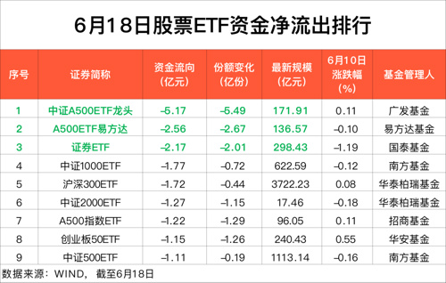 而资金净流出方面,6月18日,宽基ETF小幅“失血”。