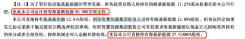 据百川股份2024年年报披露,公司实际持有海基新能源37.95%的股权,总计持有海基新能源50.08%的表决权。