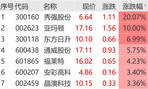 7月2日上午,光伏屋顶概念股走高。秀强股份直线拉升,走出20cm涨停;亚玛顿涨停,东方日升、通威股份、福莱特等跟涨。