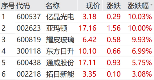 HJT电池概念股同步走高,亿晶光电、耀皮玻璃涨停。
