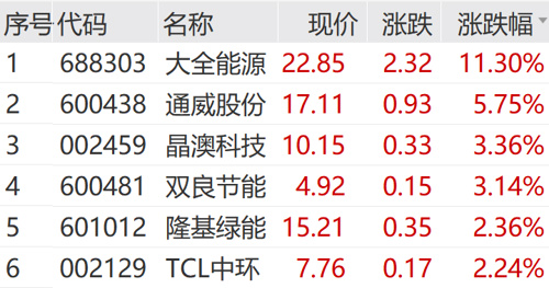 硅能源板块持续拉升,*ST新元20cm涨停,大全能源涨超11%。