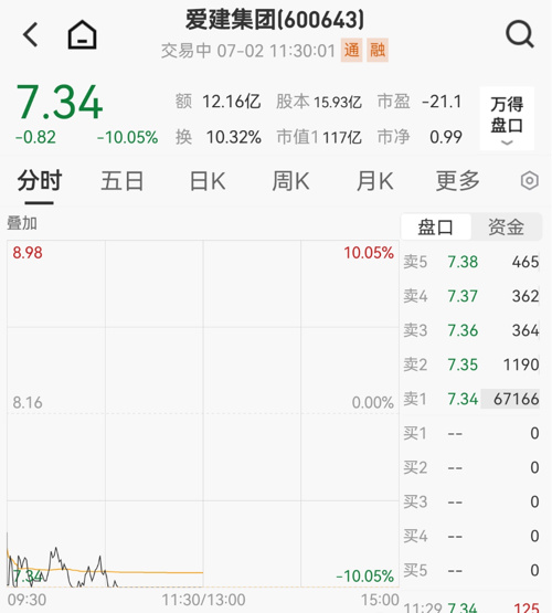 7月2日上午,多元金融板块走低。爱建集团跌停,弘业期货、国盛金控、拉卡拉等多股大跌。