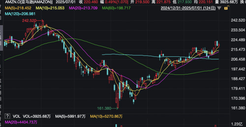 贝索斯出售亚马逊股票当日,公司股价小幅上涨。年内,亚马逊股价受美国关税政策影响震荡下跌。自4月开始,亚马逊开始修复反弹,目前基本回到年初的股价水平。