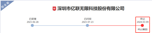 亿联无限是一家典型的IPO失败转并购的企业。亿联无限IPO申请于2023年6月获深交所受理,2024年1月回复首轮问询并更新了招股书,同月收到第二轮问询,但公司和保荐机构国金证券并没有回复,而是在一个多月后以主动撤回申请的方式,终止了IPO。
