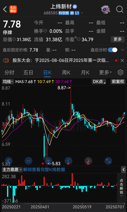 针对此次股权转让事项,上纬新材自7月2日开市起停牌,计划自7月9日开市起复牌。截至7月1日收盘,公司股价报7.78元/股,总市值为31.38亿元。