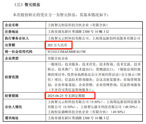 同时,智元恒岳的执行事务合伙人分别是致远新创、上海智元云程科技有限公司。