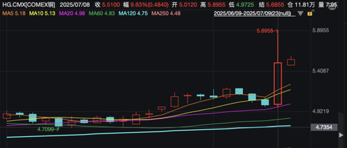 截至7月8日收盘,COMEX铜上涨9.63%,创下近月最高涨幅。