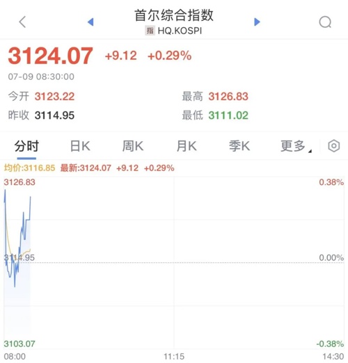 韩国KOSPI指数上涨0.29%,至3124.07点。