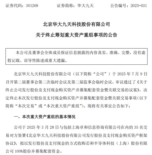 华大九天表示,目前,公司各项业务经营情况正常,本次交易的终止对公司现有生产经营活动和战略发展不会造成不利影响。根据相关规定,公司承诺自本公告披露之日起一个月内不再筹划重大资产重组事项。