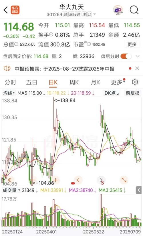 7月9日,华大九天股价收于114.68元/股,对应的总市值为622.6亿元。