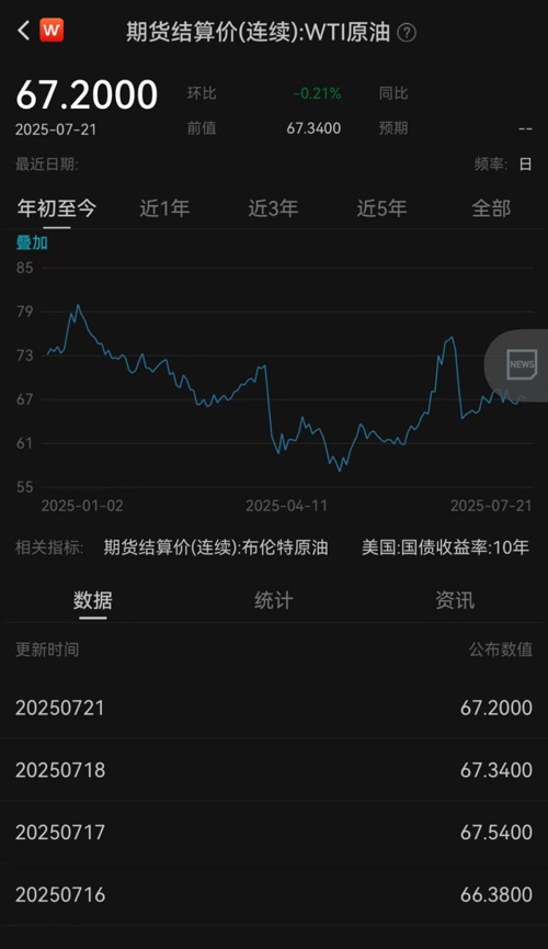 周一,油价小幅走低,WTI原油微跌,收于每桶67美元附近。
