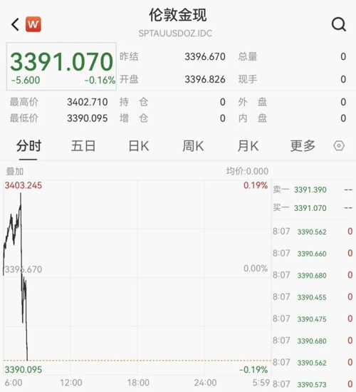 周一国际金价上涨超1.5%,重返3400美元/盎司上方,创近五周新高。不过7月22日早间,现货黄金高位回落,盘中直线下挫,截至发稿,报3391.07美元/盎司。