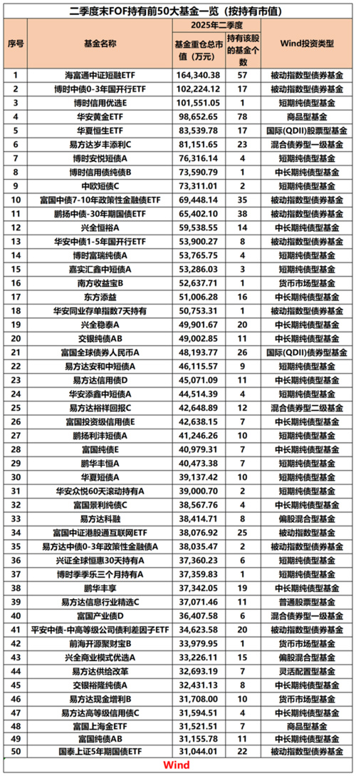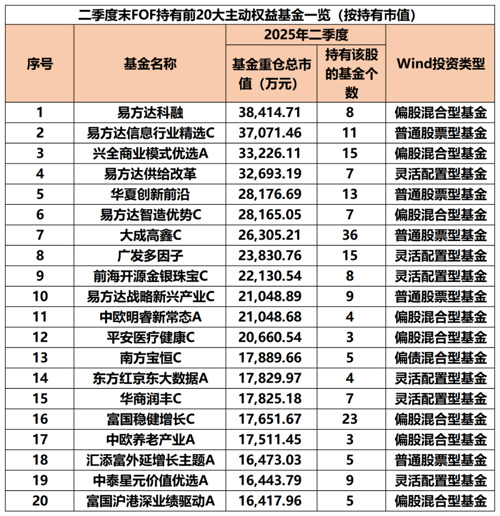 随着基金2025年二季报披露完毕,有着“专业买手”之称的公募FOF最新重仓基金情况浮出水面。