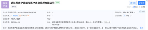 今年4月,贝泰妮旗下科凝美(上海)与开云医疗合资成立武汉科莱伊美靓泓生物科技,法定代表人为贝泰妮的高管之一高绍阳,公司经营范围明确包含医疗美容服务及三类医疗器械销售。