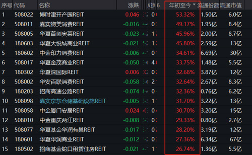 其中,博时津开科工产业园REIT年内涨幅超53%,嘉实物美消费REIT等多只产品涨幅接近50%,展现了较好的赚钱效应。