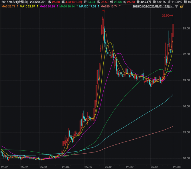 会稽山今年以来涨超134%