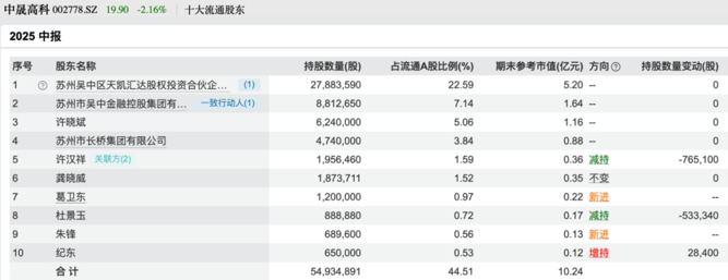 重回中晟高科股东名单