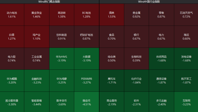 板块上来看,贵金属概念股涨幅居前,工业母机概念股开盘大涨,白酒、零售、食品等板块表现活跃;而互联网、多元金融、软件等板块震荡调整。