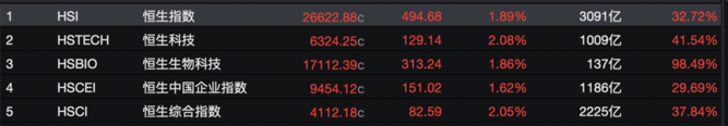 9月29日,恒生指数收涨1.89%,报26622.88点,恒生科技指数收涨2.08%,恒生国企指数收涨1.62%。全日大市成交额为3091亿港元,南向资金净卖出16.54亿港元。