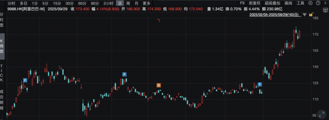 消息面上,9月29日,摩根士丹利上调了阿里巴巴美国存托凭证(ADR)的目标价,看好其云计算业务增长前景。