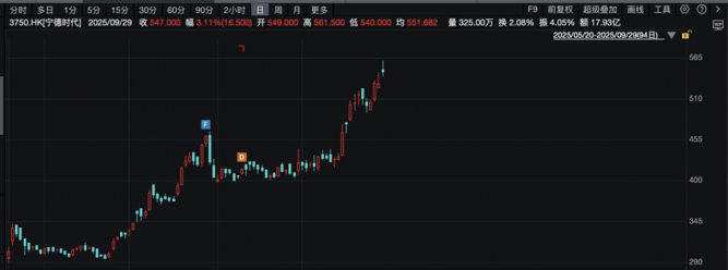 9月29日,宁德时代涨3.11%。