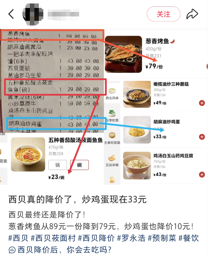 西贝全国菜品价格下调