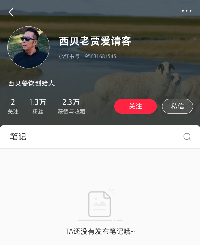 贾国龙拥有1.3万粉丝、曾获赞2.3万的小红书账号,内容也被清空。