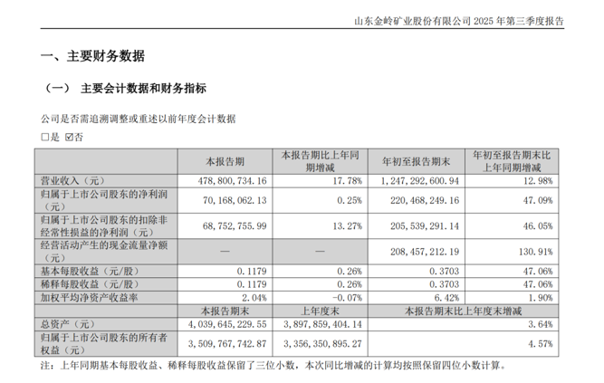 10月10日晚间,金岭矿业(证券代码:000655)发布2025年三季度报告,宣告A股首份三季报出炉。