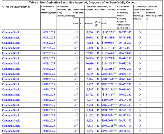 截至2025年10月10日,黄仁勋仍持有超过7060万股英伟达股票。